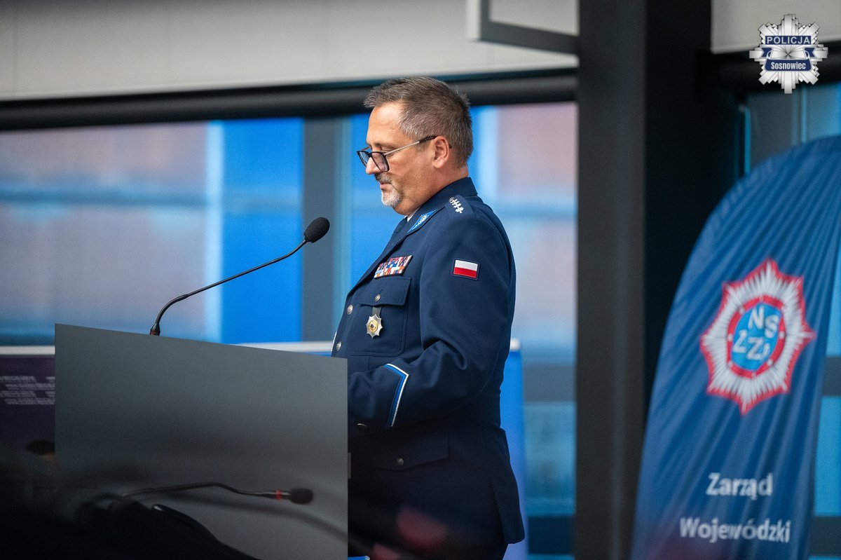 Wszystkich zaproszonych gości uroczyście przywitał Przewodniczący Zarządu Wojewódzkiego NSZZP województwa śląskiego asp. sztab. Michał Szczęśniak, który podziękował wszystkim zebranym za zaangażowanie i wsparcie organizacji związkowej, nawiązując do jej 35-letniej historii.