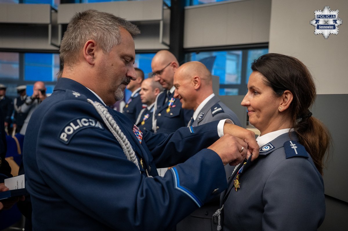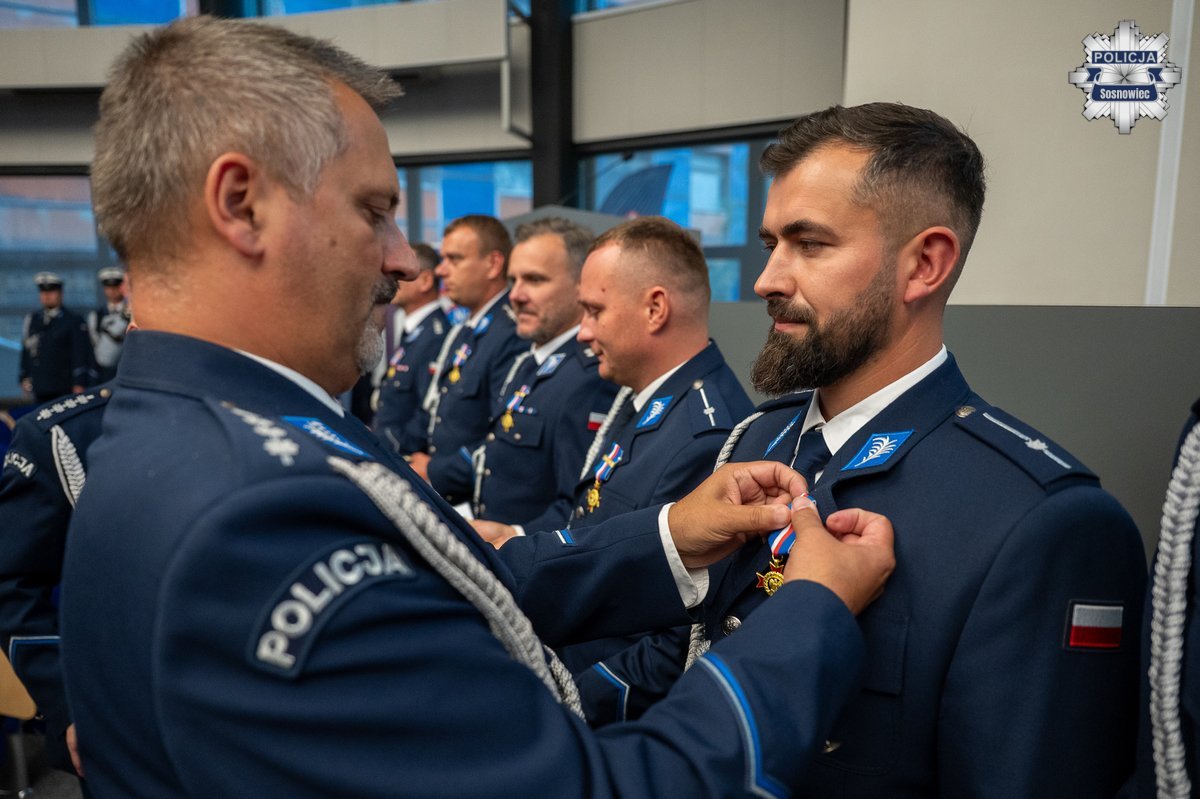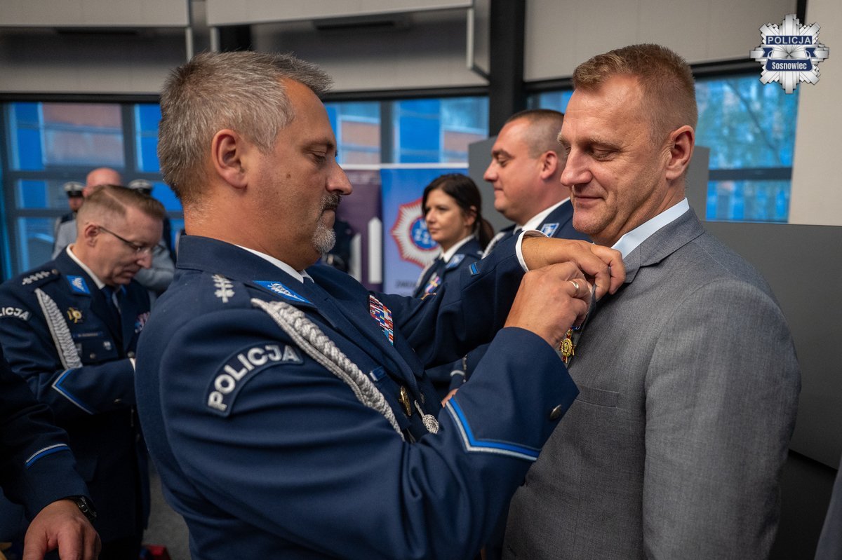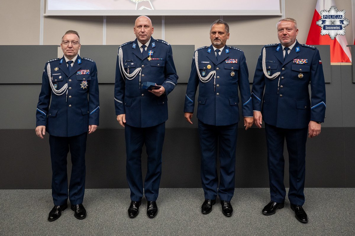 Wyróżnieni otrzymali medale z rąk Przewodniczącego NSZZP województwa śląskiego asp. sztab. Michała Szczęśniaka, któremu towarzyszyli wiceprzewodniczący związku: asp. szt. Andrzej Socha oraz asp. szt. Maciej Dziergas.