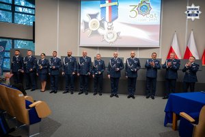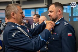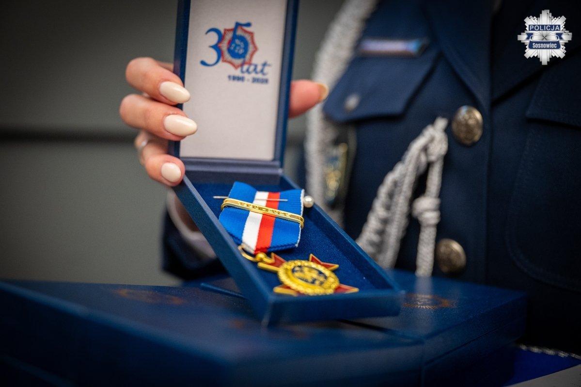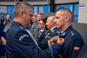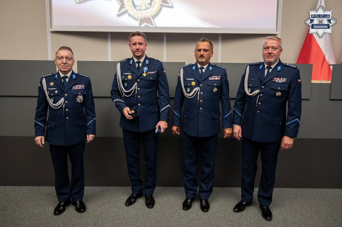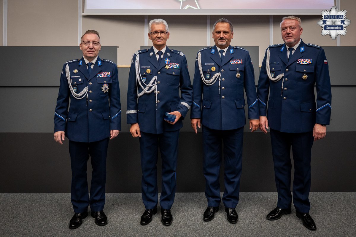 Wyróżnieni otrzymali medale z rąk Przewodniczącego NSZZP województwa śląskiego asp. sztab. Michała Szczęśniaka, któremu towarzyszyli wiceprzewodniczący związku: asp. szt. Andrzej Socha oraz asp. szt. Maciej Dziergas.