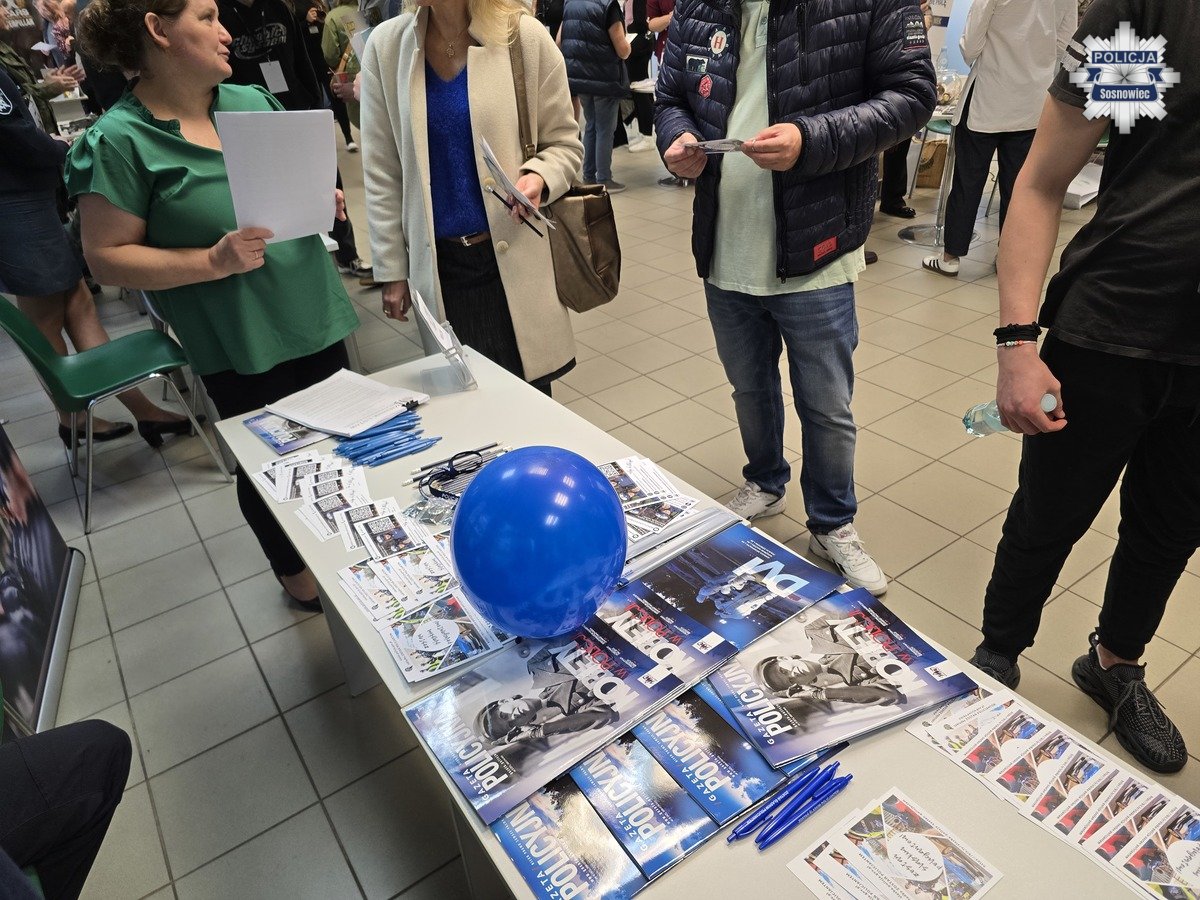 Wczoraj policjanci z Wydziału Doboru i Szkolenia Komendy Wojewódzkiej Policji w Katowicach, Komendy Miejskiej Policji w Sosnowcu, wspólnie z pracownicą Zespołu Kadr i Szkolenia sosnowieckiej komendy wzięli udział w targach pracy zorganizowanych przez Powiatowy Urząd Pracy w Sosnowcu, promując służbę w Policji i zachęcając młodych ludzi do wstąpienia w szeregi naszej formacji.