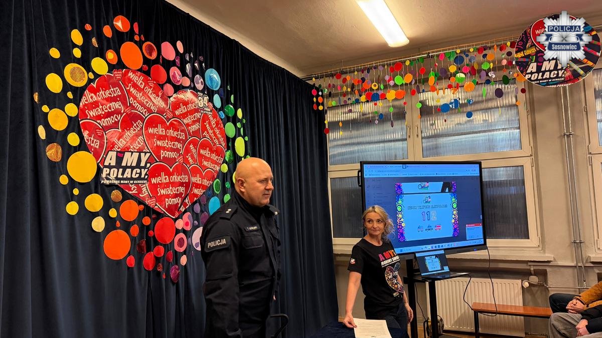 Wczoraj wieczorem w IX Liceum Ogólnokształcącym im. Wisławy Szymborskiej policjanci z sosnowieckiej komendy spotkali się z wolontariuszami WOŚP. Podczas spotkania funkcjonariusze koncentrowali się na bezpieczeństwie osobistym osób zaangażowanych w kwestę na terenie Sosnowca dla WOŚP podczas tegorocznego finału.