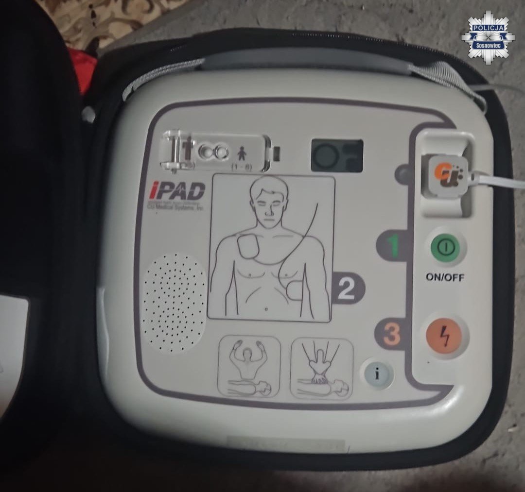 Sosnowieccy wywiadowcy interweniowali w związku ze zgłoszeniem dotyczącym awantury domowej w jednym z mieszkań przy ulicy Spadochroniarzy. Podczas czynności zwrócili uwagę na defibrylator AED znajdujący się na szafce w przedpokoju.